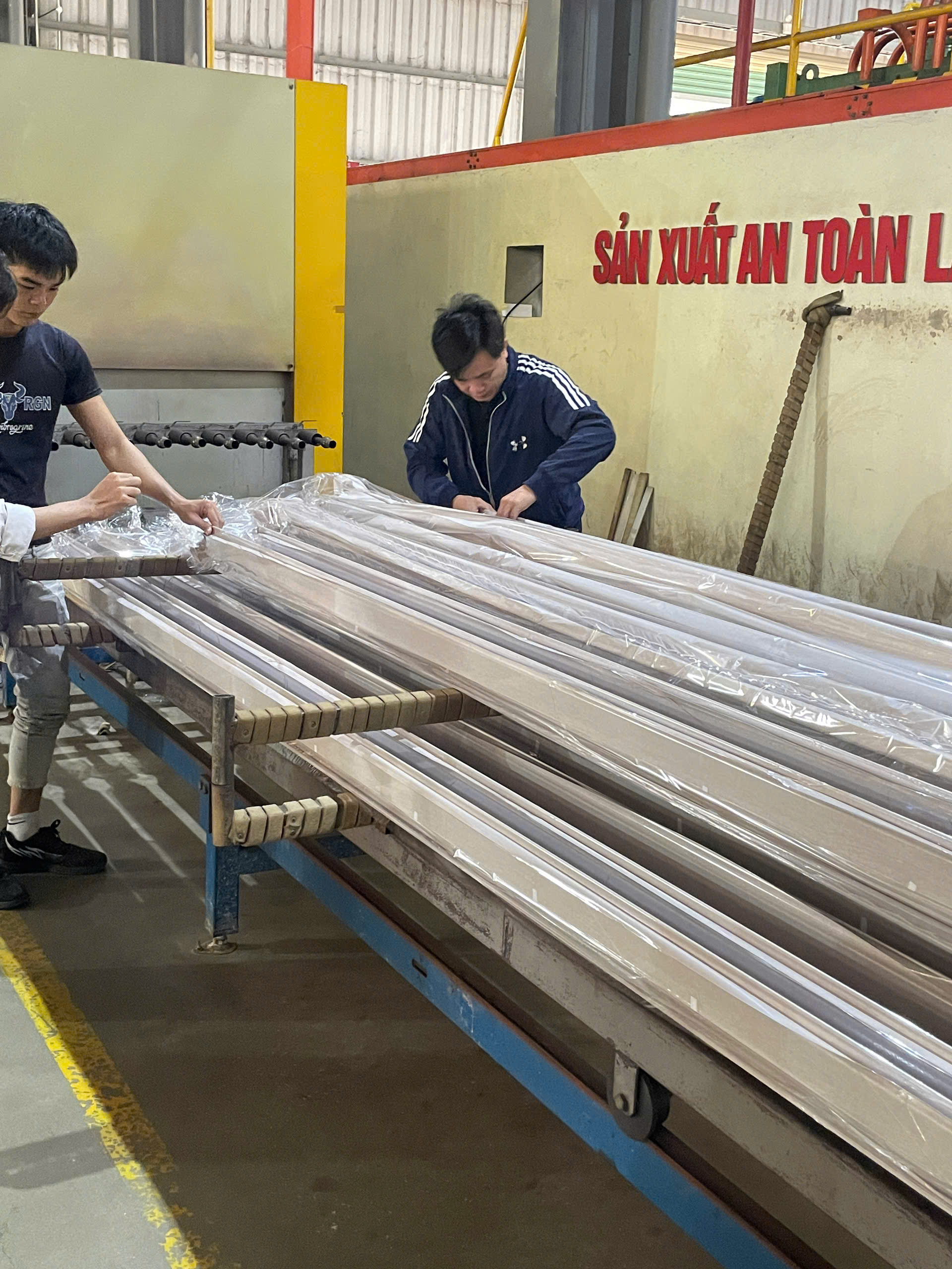 Các thanh nhôm được đưa vào lò hấp ở nhiệt độ ổn định từ 180°C - 200°C.