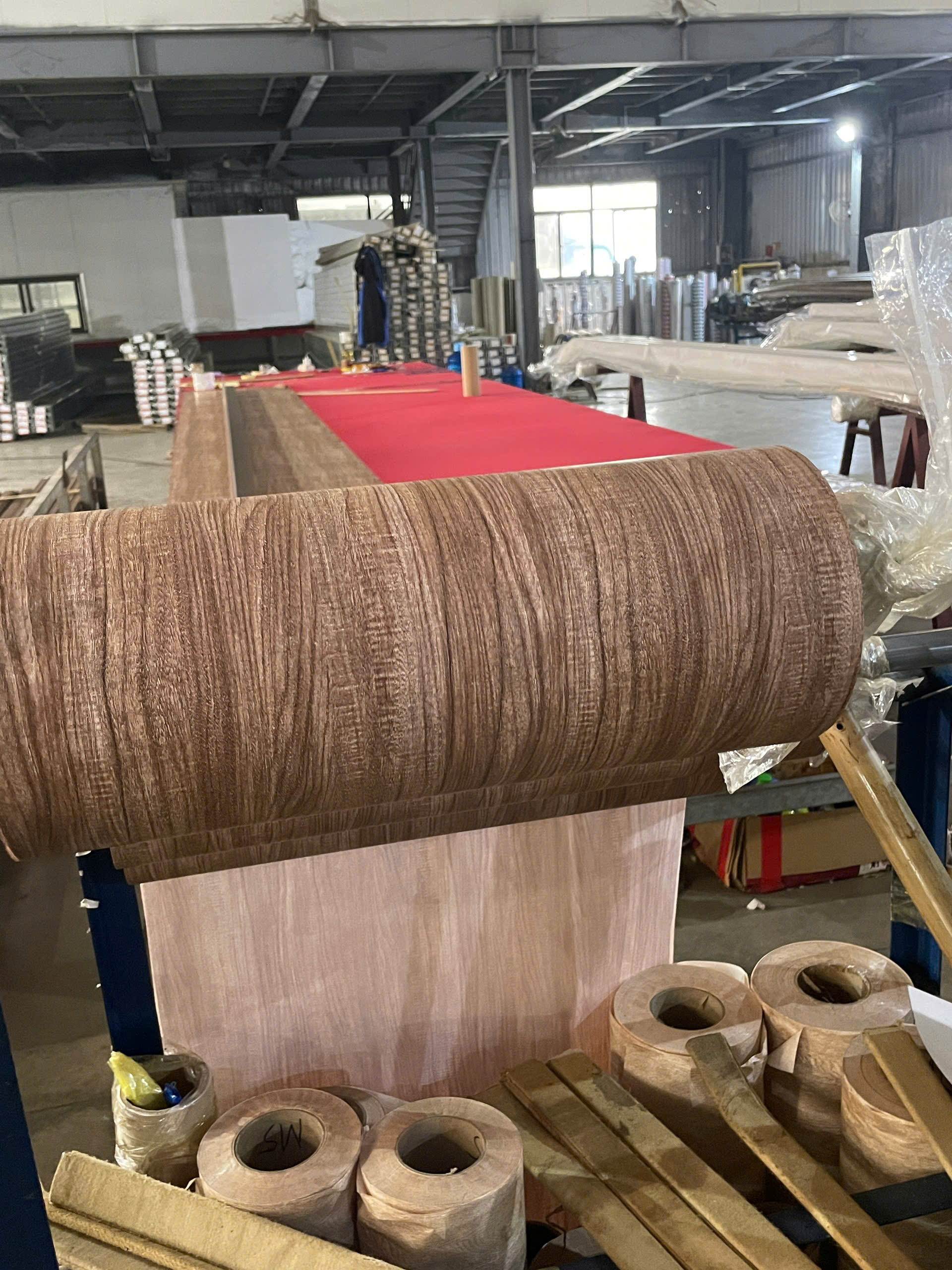- Hút chân không: Đây là kỹ thuật then chốt. Máy hút chân không sẽ tạo lực ép cực lớn, khiến phim dán chặt vào các hốc, rãnh của nhôm mặt dựng hoặc khung cửa. Nếu bước này làm không kỹ, vân gỗ sẽ bị mất nét ở các góc cạnh.