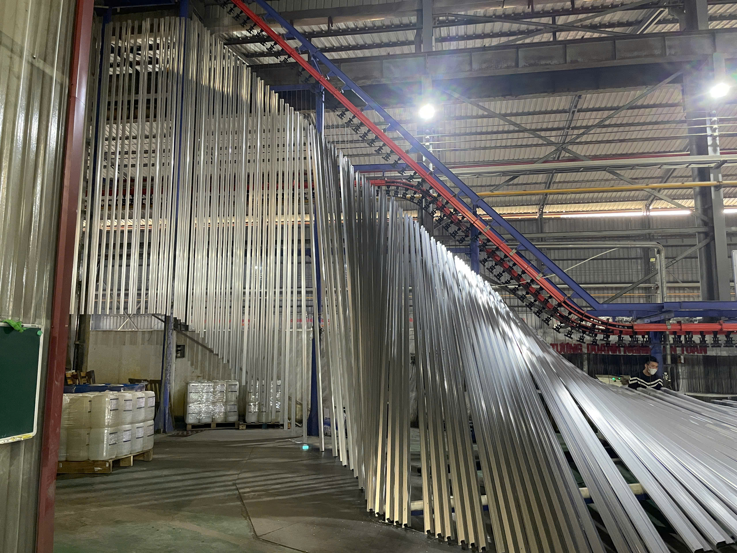 Đây là công đoạn quan trọng nhất để chống bong tróc. Thanh nhôm thô (aluminum profile) sau khi đùn ép sẽ được nhúng vào các bể hóa chất: